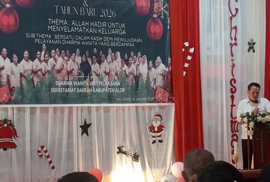 Demikian disampaikan Wakil Bupati Alor, Rocky Winaryo, SH., M.M., saat menghadiri Ibadah Syukuran Natal 2025 dan Tahun Baru 2026 Dharma Wanita Persatuan (DWP) Unit Pelaksana Sekretariat Daerah Kabupaten Alor.